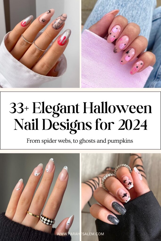 In this article, I put together a roundup of the 33 most elegant Halloween nail designs to hopefully inspire you for your nail appointment during the spooky season. Whether you prefer spider webs and ghosts or a minimal spooky look, there’s a Halloween mani for everyone.